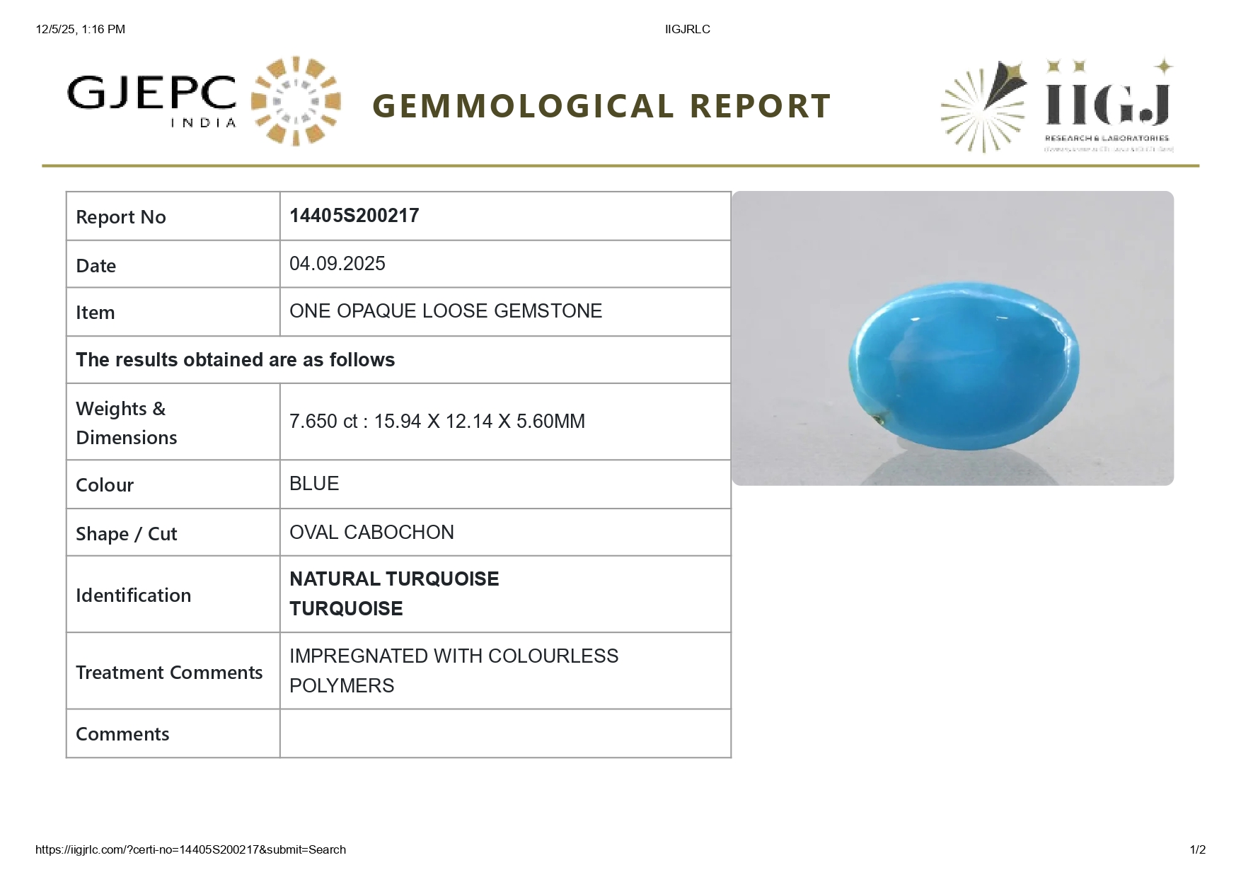 Buy one beautiful translucent 7.65 Carat/ 8.41 Ratti original Firoza stone online with premium quality and good color intensity. The origin of this Firoza stone is Iran.