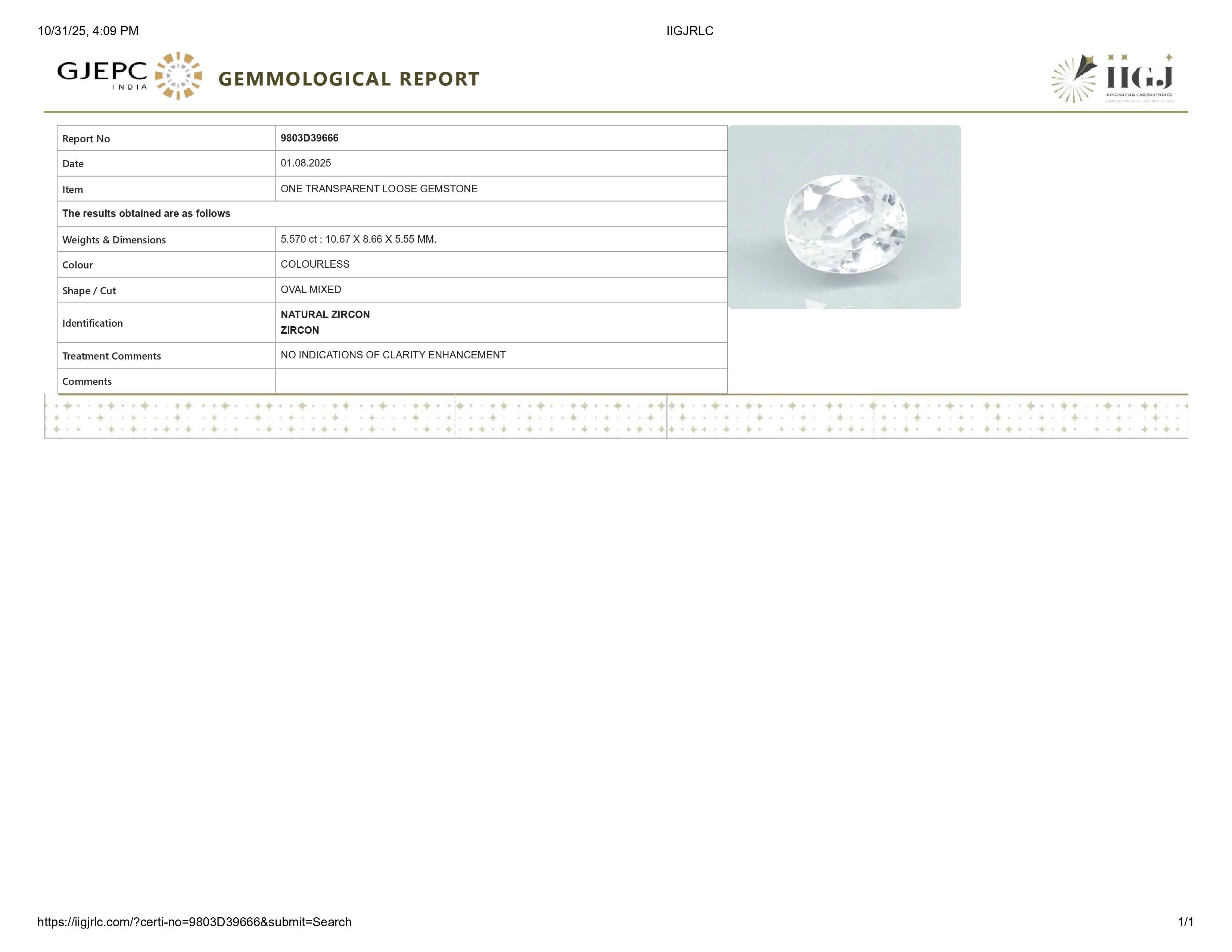 100% Original Natural Transparent White Zircon Gemstone Online with Govt Lab Certified Astrology and Vedic purpose only to make venus sunshine more powerful. Always Wear White Zircon in a ring, pendant, or bracelet form to brings success, wealth & happiness in life